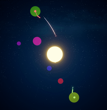 I finally finished a AI for my game Dots In Space...! The game has a good amount of resemblance to the Worms games but it is in space and gravity of planets and the sun are affecting projectiles.
